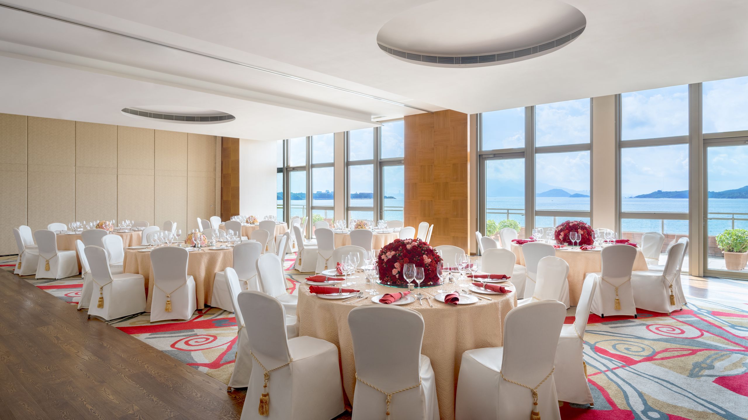 The versatile Marine has a capacity for 350 guests for a cocktail function or 240 in a banquet setting. For guests requiring a smaller space, the Marine can be easily converted into four individual spaces, each one large enough to receive up to 60 guests for a formal dinner.
