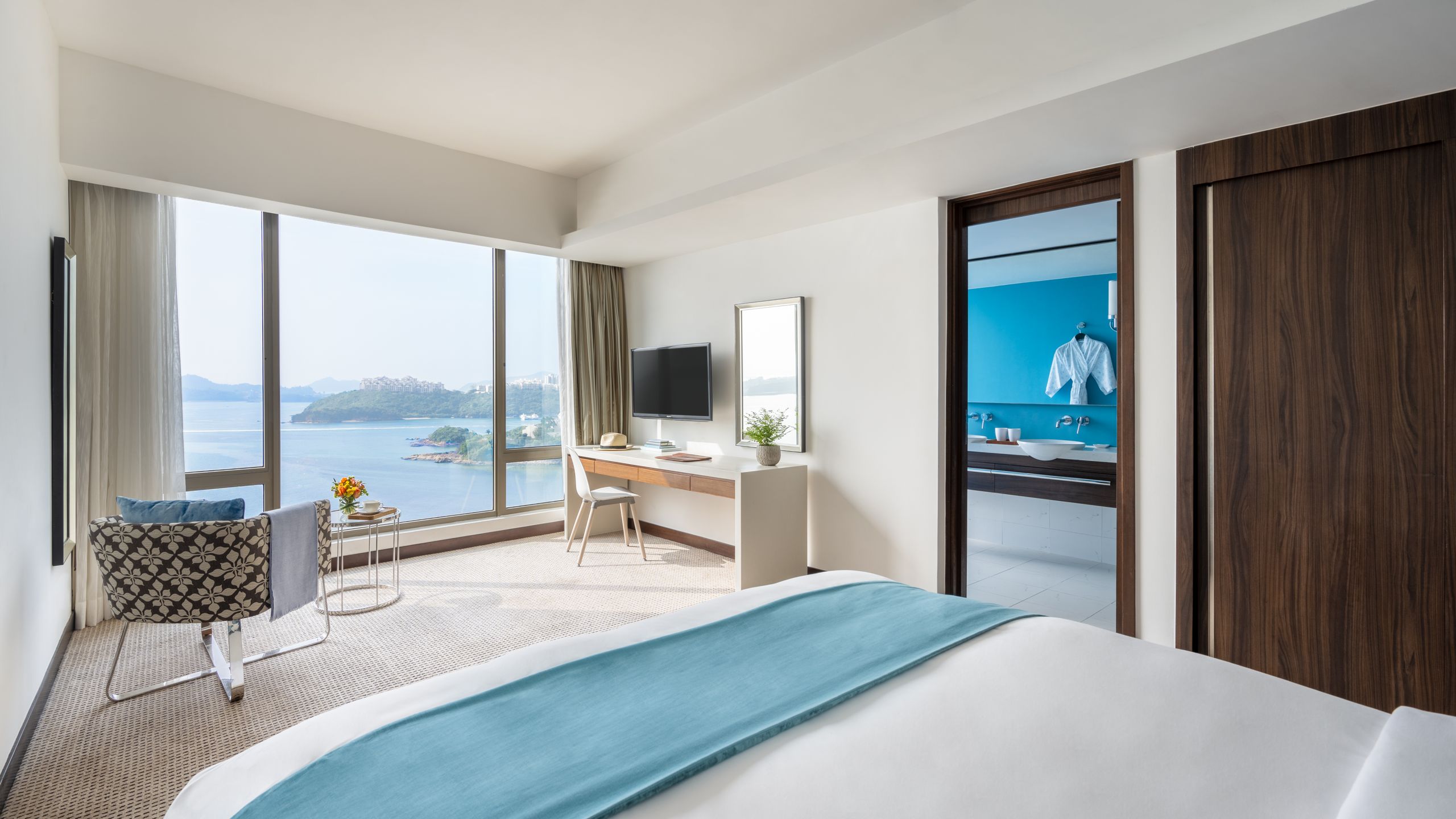 香港愉景湾酒店的套房均特别安排在酒店的最高6层,确保壮丽海景或优美山景皆尽收眼底。而且,64个套房的起居室和卧室均间格独立,同时享有特大的空间感,彰显尊贵的住宿体验。